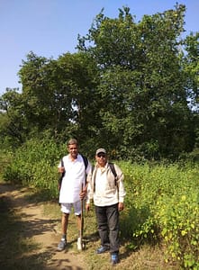 टी पी चौधरी साहब सपत्नीक गेंदों की मालाओं, नारियल,फल और ढेर सारा प्यार व परकम्मावासियों के प्रति हृदय में सम्मान आस्था लेकर तिलवारा घाट पर खड़े थे। हमारी स्थिति लेते रहे थे। मोबाइल से उनको निवेदन किया कि एक नाव घाट से भिजवा दें। इसके पहले कि वे घाट पर आएँ, एक नाविक को हम दिख गए और हमने भी तेज़ आवाज़ के साथ हाथ हिलाए। एक नाव में बैठकर तिलवारा घाट पर उतरे। चौधरी साहब ने बड़ी आत्मीयता और सम्मान से मालाओं को पहनाकर स्वागत किया और नारियल चीरोंजी अर्पित किया मानो हम देव हो गए हों। हमेशा की तरह हम उनके चरणस्पर्श करने को झुके तो उन्होंने हमें रोक दिया क्योंकि हम परिक्रमा वासी थे। भाभी जी अभिभूत थीं। उनका मातृवत प्रेम पूरी यात्रा हमारे साथ चला। सब लोग चौधरी दम्पत्ति के बारे में बतियाते रहे।