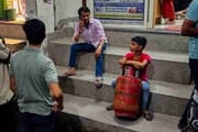 गैस एजेंसी की दुकान से पांच सो गज़ पूर्व वाहन प्रतिबंधित थे। जिस तरफ भीड़ जा रही थी, हम भी उसका हिस्सा बन गए, अधिकतर लोग खाली सिलेंडर साथ लिए हुए थे।
